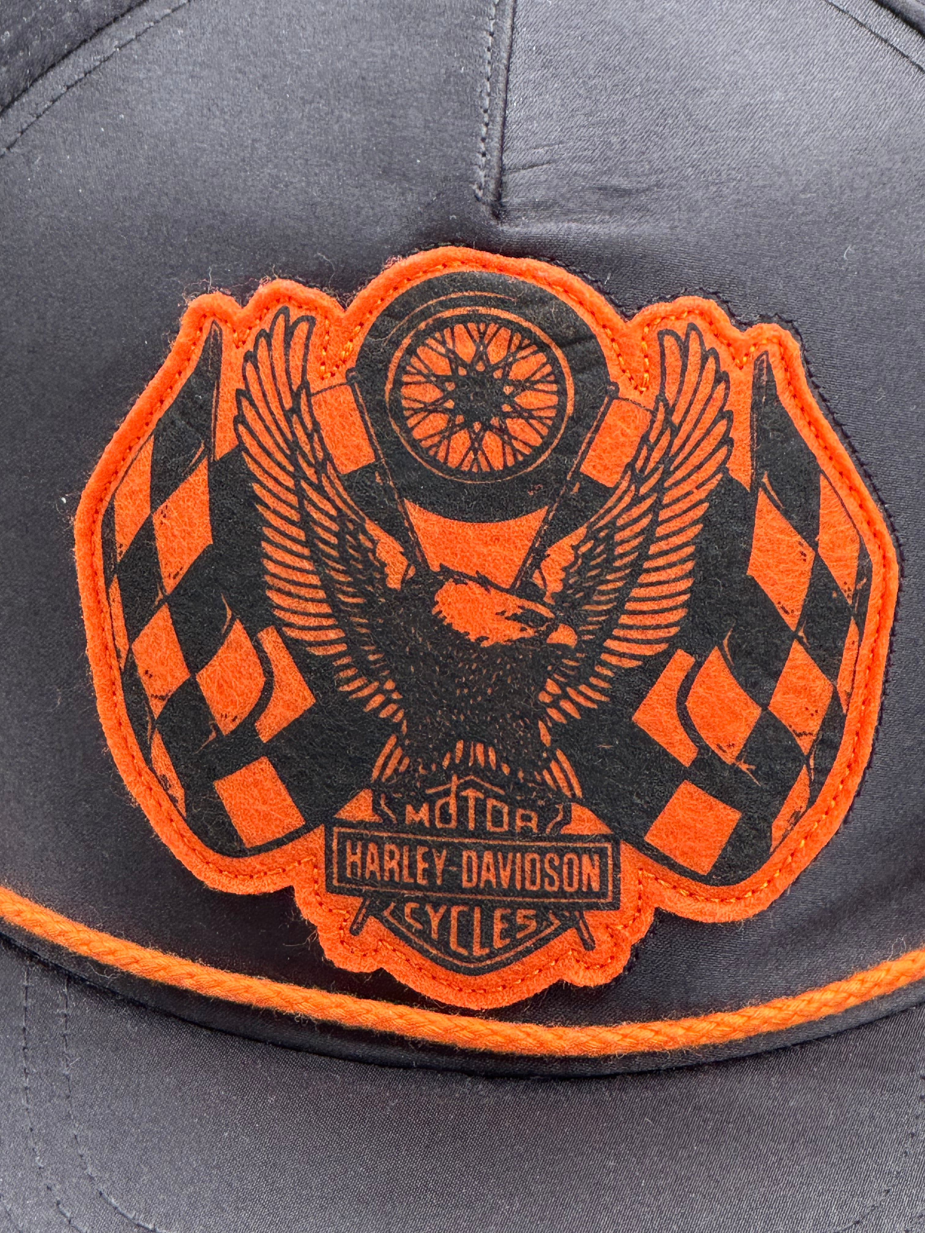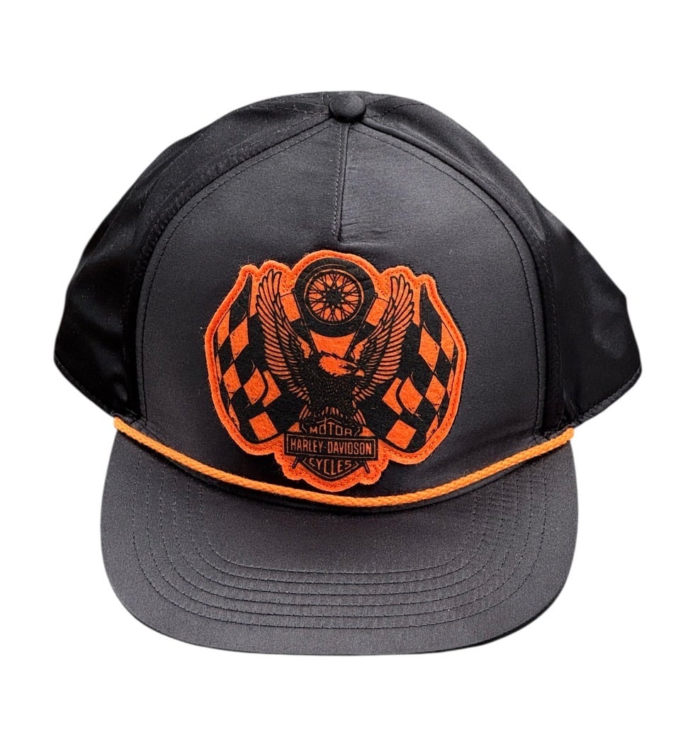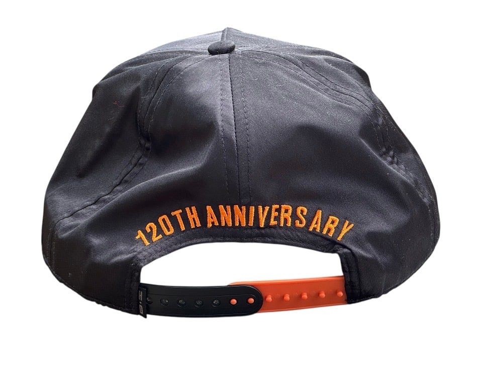 ハーレーダビッドソン 120周年記念 メンズ レーシングフラッグ イーグル スナップバックキャップです。このキャップは2023年のハーレーダビッドソン創立120周年を記念して発売された限定モデルです。