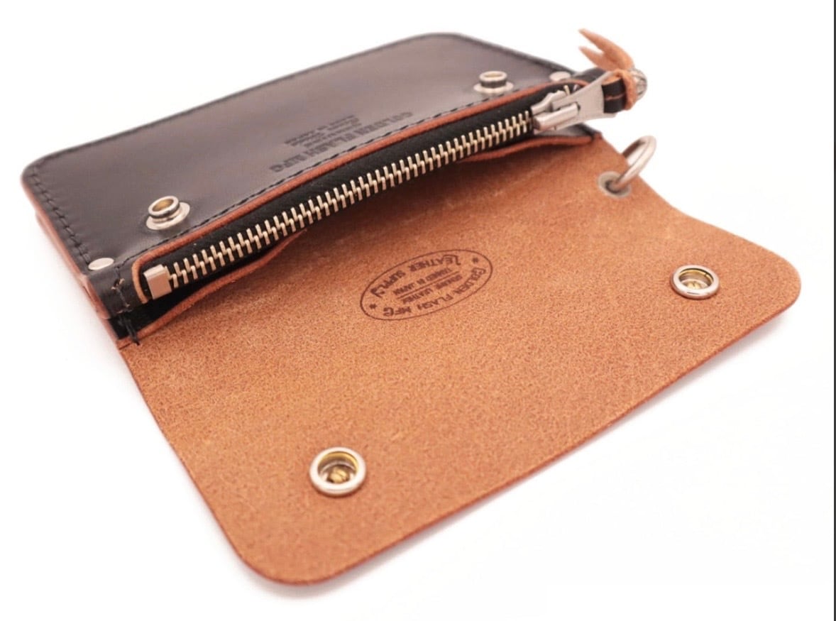 長く使い込み、時間とともに育てるために設計された、GOLDEN FLASH MFGのトラッカーズウォレット。